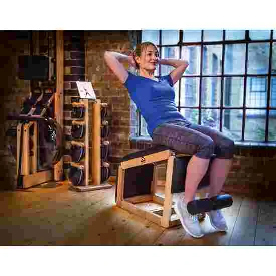 The NOHrD TriaTrainer is made of high-quality wood and covered with your choice of black synthetic or genuine leather. The training bench can be set up in a variety of positions, allowing you to challenge yourself with even more varied workouts. In addition to exercises for strengthening your core, the bench is also ideal for classic bench presses. The foot supports are adjustable, allowing you to train in various positions. After your workout, you can conveniently fold up the TriaTrainer for compact storage.